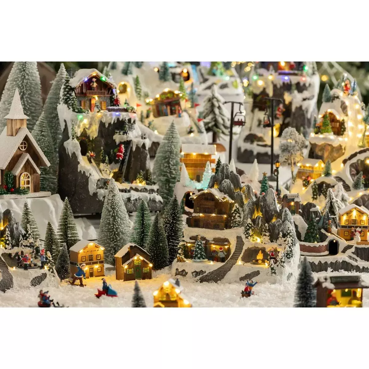 Vive la magia del invierno con este encantador Pueblo Luminoso Refugio de Montaña, una pieza decorativa que combina luz, movimiento y realismo para llenar tu hogar de espíritu navideño.
