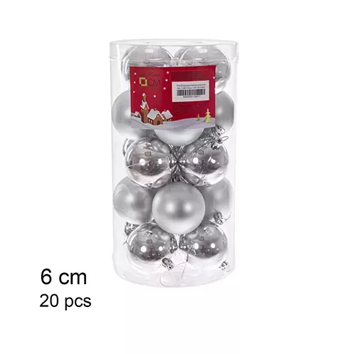 Bolas Navidad Plata Brillo/Mate/Purpurina 6cm 20pcs