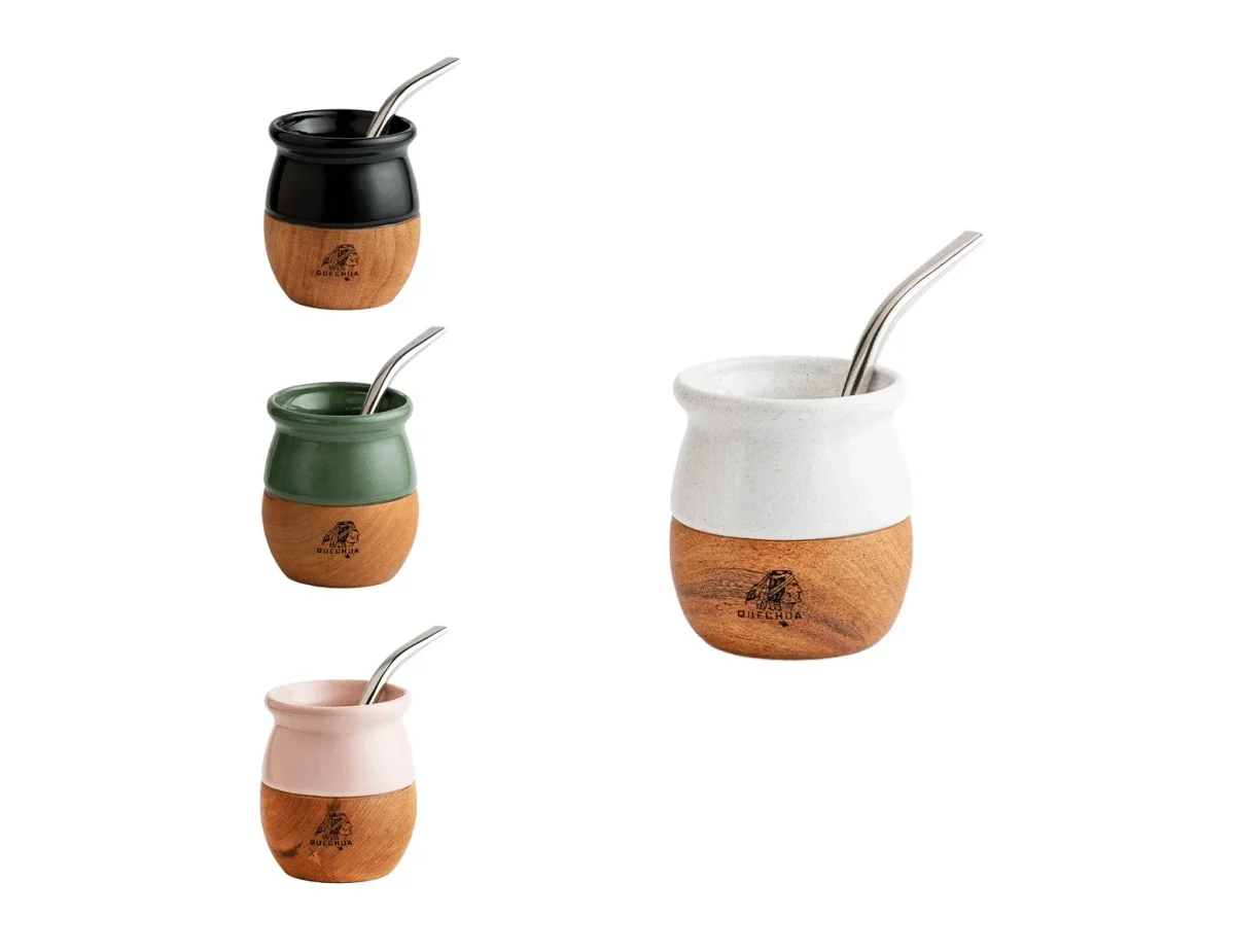 Mate Quechua Cerámica y Madera con Bombilla