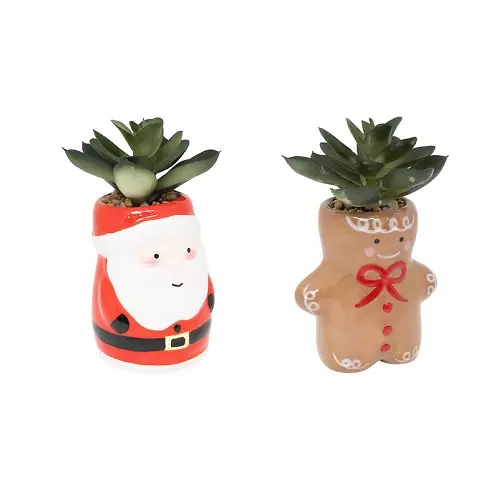Planta artificial en maceta cerámica de decoración Navidad. Venta individualmente, modelo al azar según stock. Medida L. 7,5 x P. 7 x H. 11,5 cm