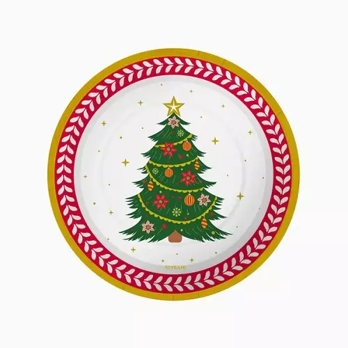 Platos Cartón Navidad Abeto 17cm 6uds