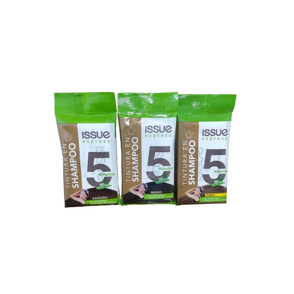 Issue express, tintura en shampoo, de un solo uso y sin amoniaco