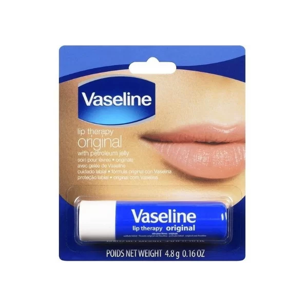Vaseline Bálsamo Labial Original proporciona hidratación y protección para labios secos y agrietados, manteniéndolos suaves y saludables.
